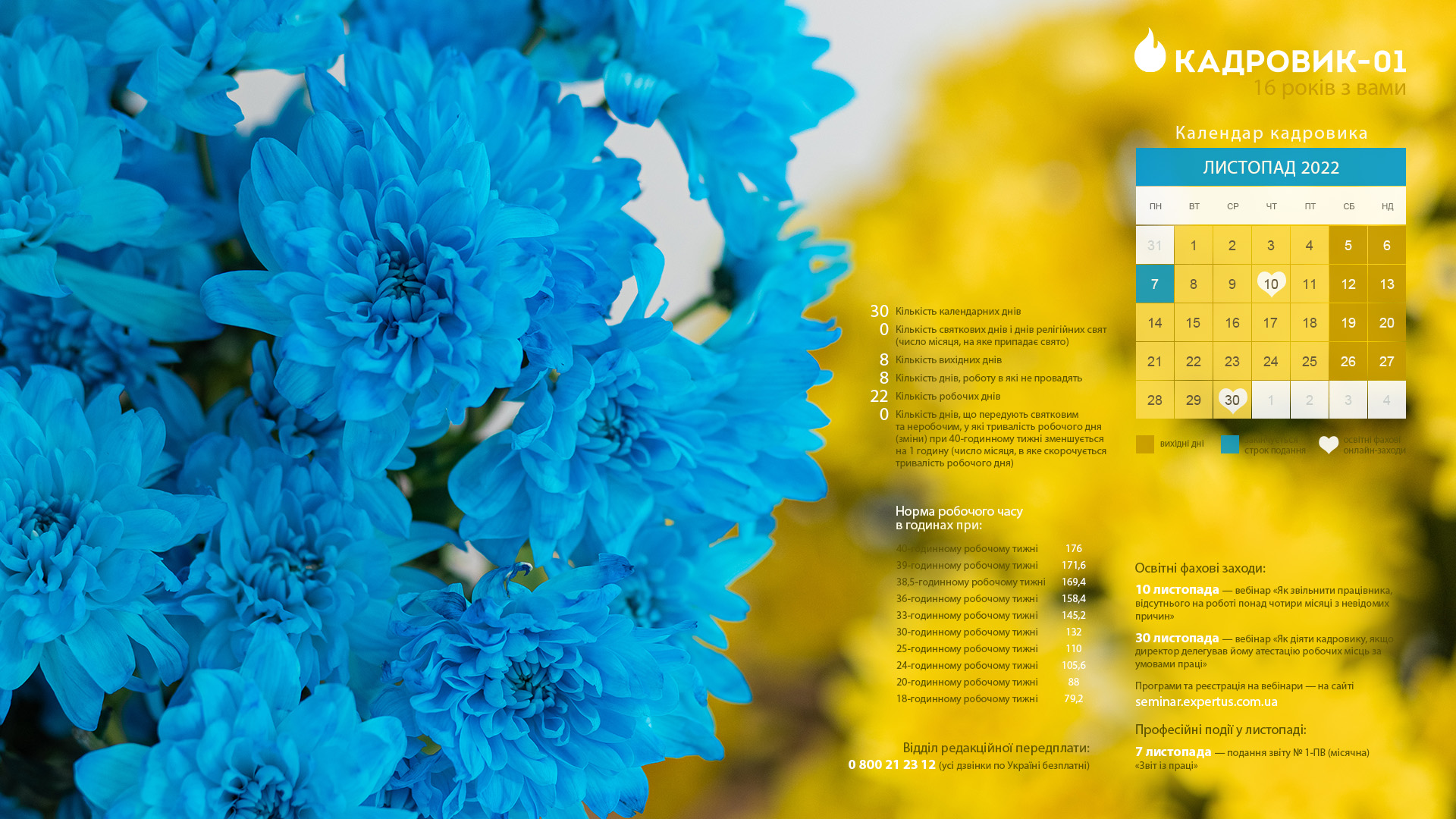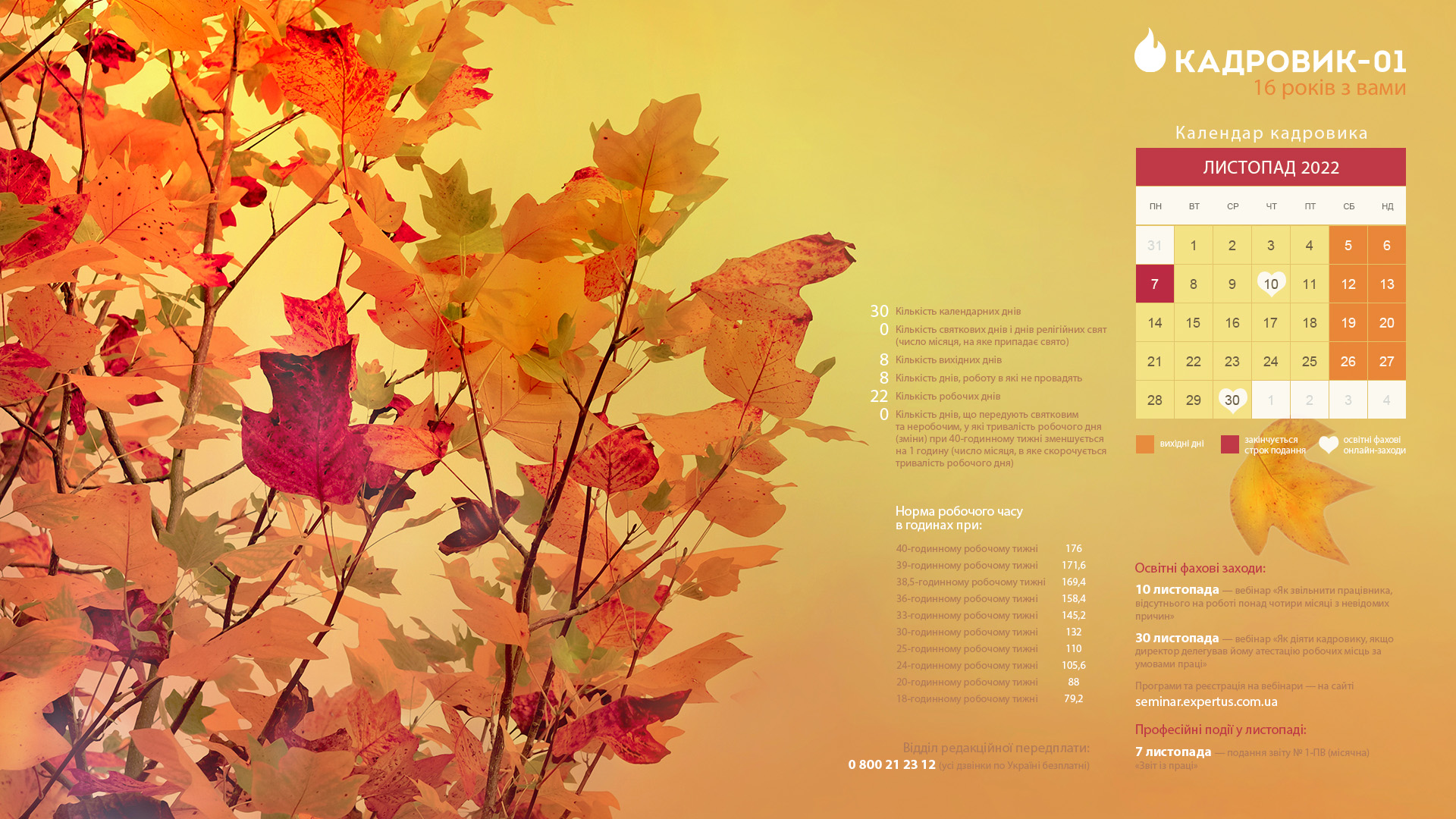 Календар кадровика ЛИСТОПАД 2022
