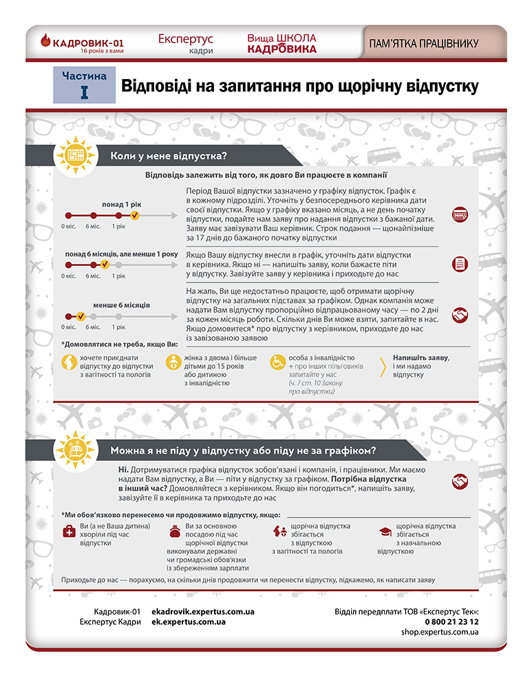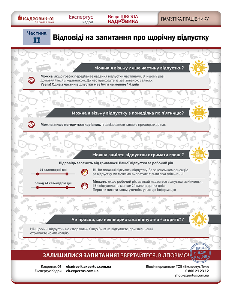 🖺Відповіді на запитання про щорічну відпустку. Пам’ятка працівнику