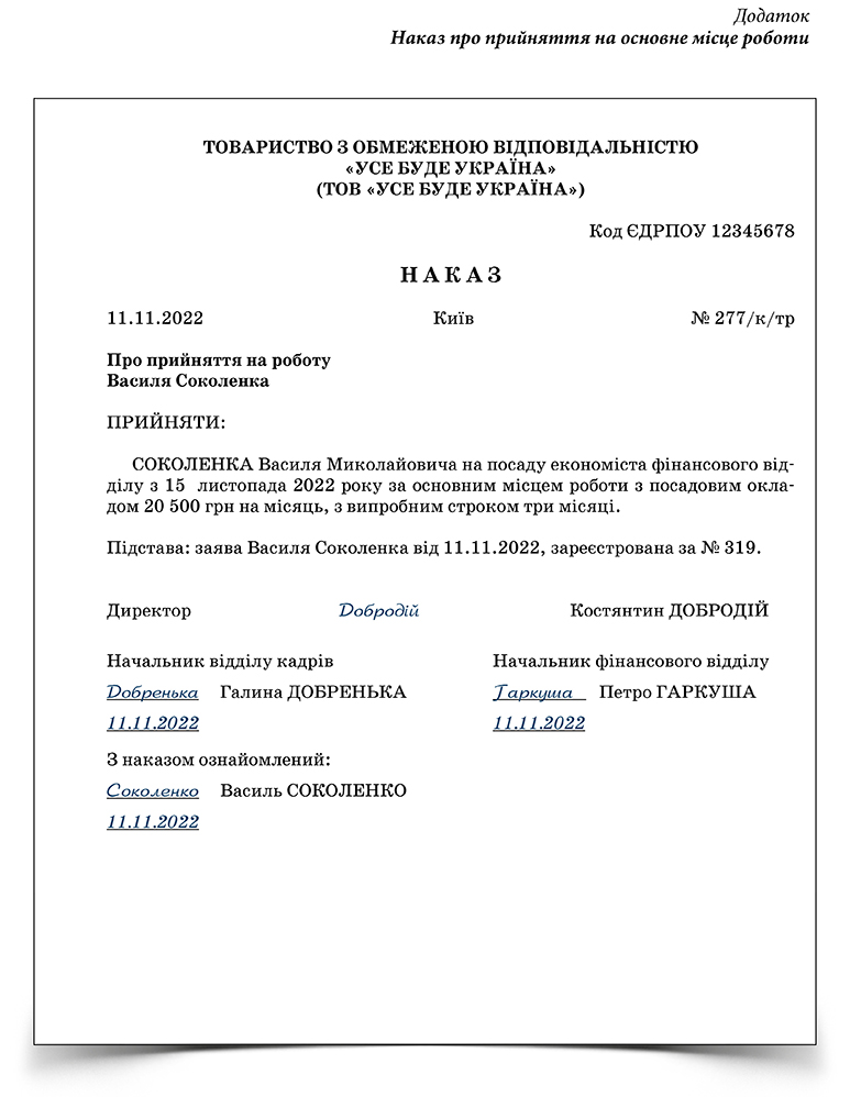 Вказуйте відомості про працівника в підставах для видання документа у форматі Власне ім’я Прізвище у родовому відмінку - Підпис
